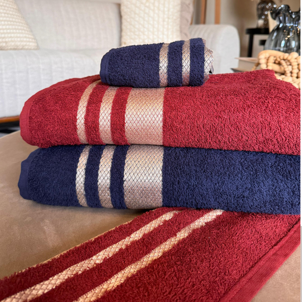 Renove seu enxoval com o Jogo de Toalhas 4 Peças, composto por 2 toalhas de banho e 2 toalhas de rosto, perfeito para quem busca praticidade, estilo e qualidade no dia a dia. As cores modernas e a barra elegante foram pensadas para combinar facilmente com qualquer lavabo ou banheiro, trazendo um toque de sofisticação ao ambiente.