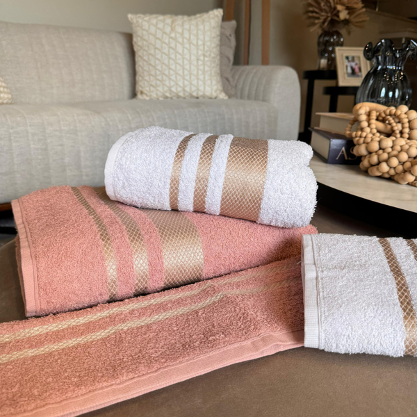 Renove seu enxoval com o Jogo de Toalhas 4 Peças, composto por 2 toalhas de banho e 2 toalhas de rosto, perfeito para quem busca praticidade, estilo e qualidade no dia a dia. As cores modernas e a barra elegante foram pensadas para combinar facilmente com qualquer lavabo ou banheiro, trazendo um toque de sofisticação ao ambiente.