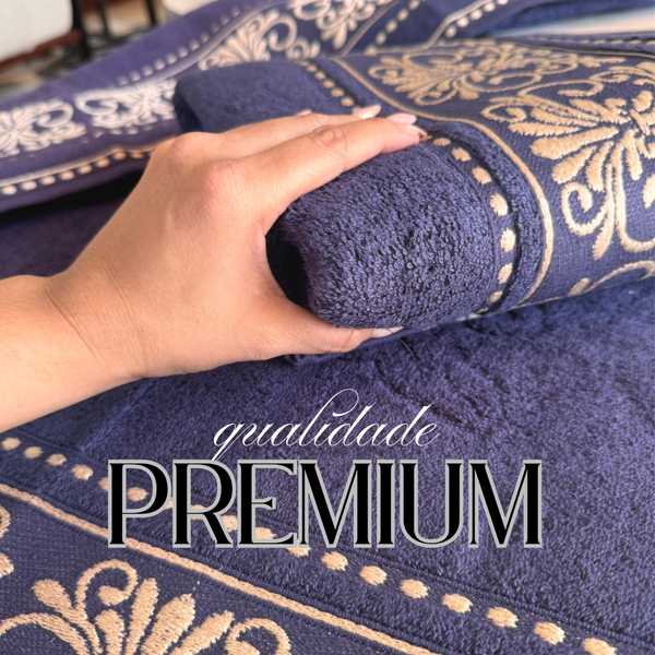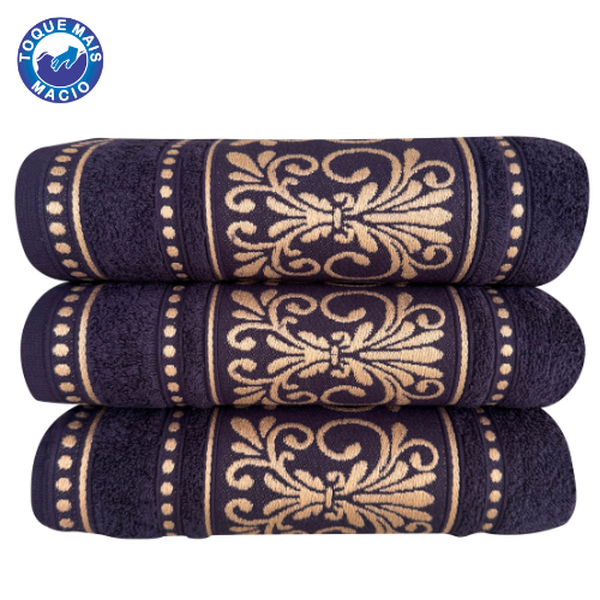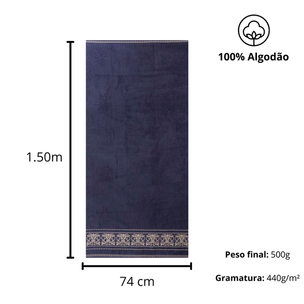 Kit 3 Toalhas Banho Gigante Vicenza Algodão Fio Penteado Azul Marinho