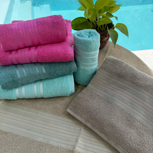 Toalha de banho Sarah é confeccionada em 100% Algodão de alta qualidade, proporcionando maciez e conforto ao toque.