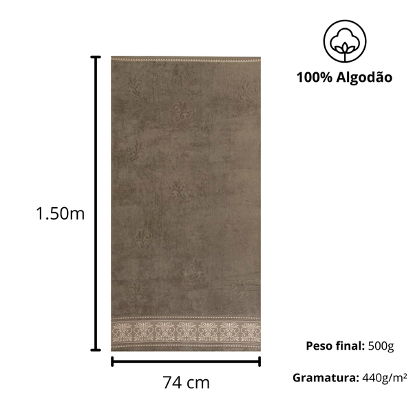 confeccionado com 100% de algodão fio penteado, proporcionando suavidade incomparável e alta absorção.